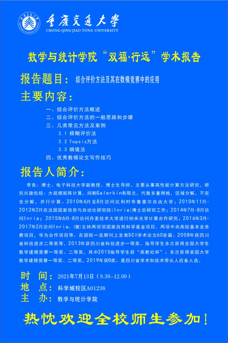 【双福·行远】综合评价方法及其在数模竞赛中的应用