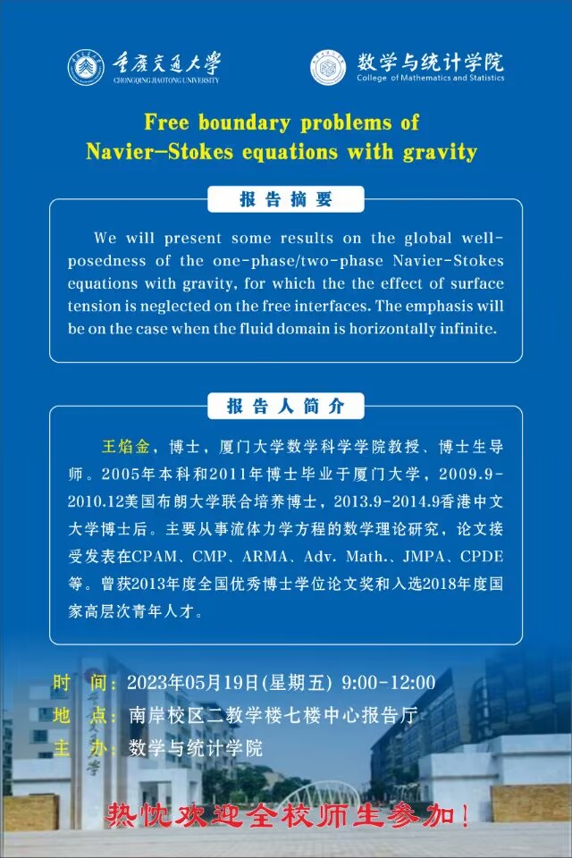 学术报告:Free boundary problems of Navier-Stokes equations with gravity